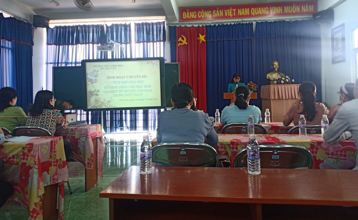 Thực hiện chỉ đạo theo công văn số 533/PGDĐT- GDTrH, ngày 11 tháng 12 năm 2020 của Phòng Giáo dục và Đào tạo thị xã Bến Cát về việc triệu tập thao giảng dự giờ và sinh hoạt chuyên đề môn Ngữ văn bậc THCS. Sáng nay, ngày 16/12/2020 tổ Ngữ văn Trường THCS Thới Hòa tổ chức chuyên đề “Tích hợp giáo dục kĩ năng sống cho học sinh qua một số truyện dân gian trong Ngữ văn 6”