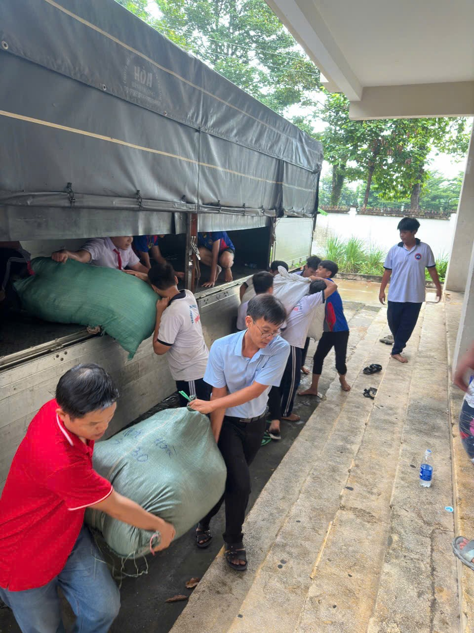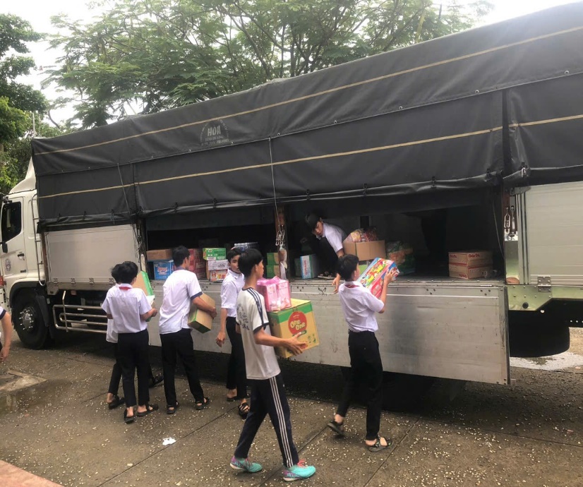 Một số hình ảnh về cán bộ, giáo viên, phụ huynh và học sinh của nhà trường tham gia vận chuyển vật phẩm ủng hộ về Công đoàn Thành phố Bến Cát: